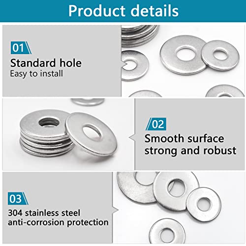 【Hoogwaardige materialen】 De Flat Washers zijn gemaakt van hoogwaardig 304 roestvrij staal, dat in slechte omgevingen niet zal roesten of corroderen. De Flat Washersset is uitstekend bestand tegen hoge temperaturen, hoge luchtvochtigheid en oxidatie