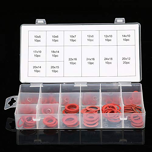 Rondelle, Assortimento di rondelle di tenuta ad avvolgimento 150 pezzi 14 misure Kit di rondelle piatte in fibra di carta in acciaio rosso Set di rondelle di isolamento assortite con scatola