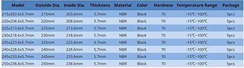 Rondelle a molla - Specifiche multiple 5pcs-Specifiche multiple- O-anelli nerili neri 5,7 mm Spessore 215/220/225/230 / 235/225/250/235/225/245 / 250 mm OD NBR O anelli Foro Sealing Guarnizione Rond