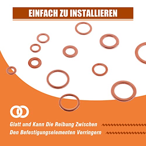 Quantità: contiene 420 pezzi, i dischi di rame di 12 dimensioni più comunemente utilizzati. Diverse dimensioni possono soddisfare diverse esigenze e la guarnizione in rame da 420 pezzi è sufficiente per l'uso quotidiano.