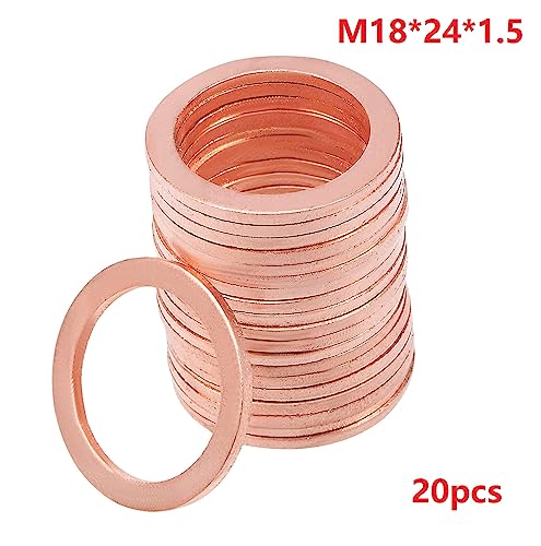 20 rondelle in rame M18 ad anello piatto tappo coppa olio guarnizione di tenuta rondelle di tenuta (M18 x 24 x 1,5)