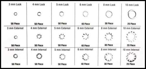 Set di rondelle zincate miste 720 pz. grover e dentellate interne ed esterne