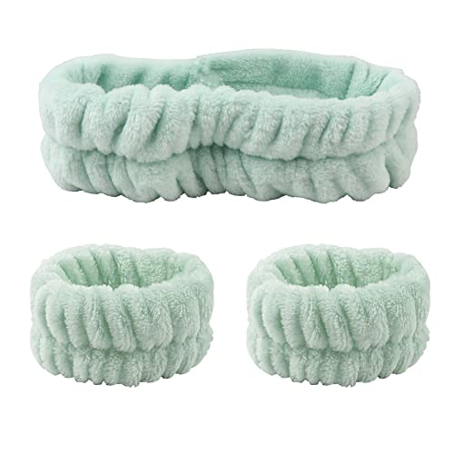 Rongchuang 3 Pezzi Fascia Capelli Donna Trucco Spa Washband Set, Riutilizzabile Corallo Fleece Facciale Trucco Headband Wrist Washband per Le Donne Ragazze