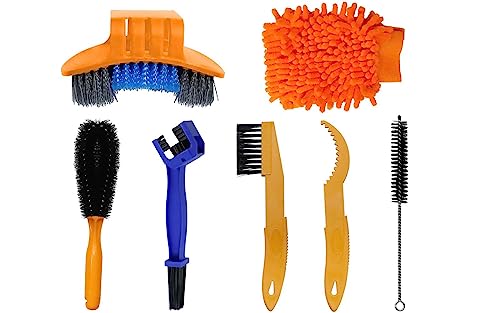 RongQiLBB Kit Pulizia Bici 7 Pezzi Spazzole per Pulizia della Bicicletta Strumento di Bici Catena per Tutte Le Bici Pulizia Catena, Pignone