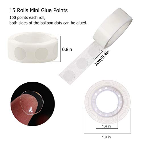 RONGRONG - 1500 punti di colla per palloncini, 15 rotoli di colla per palloncini, adesivi rimovibili, per feste, matrimoni, decorazioni fai da te