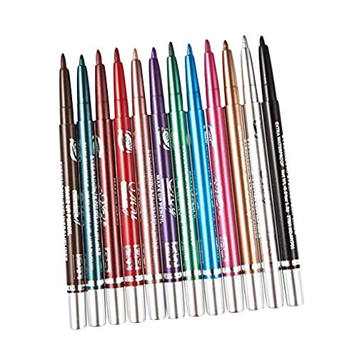 Rongweiwang 12 Colori/Set Eyeliner Automatici telescopici a Rotazione Lip Liner Penna Automatici ombretti matite Penna Cosmetici Kit di Trucco