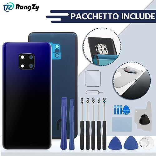 RongZy Copribatteria Posteriore Ricambio per Huawei Mate 20 PRO LYA-L09 LYA-L29 Parte di Ricambio della Alloggiamento Coperchio Batteria con Strumento(Aurora Blu)