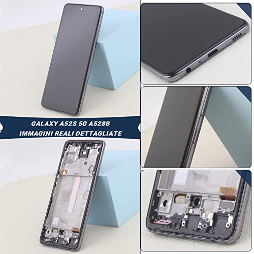 RongZy LCD Display per 6.5" Samsung Galaxy A52s 5G A528B Schermo LCD Touch Screen Assemblea Sostituzione di Vetro Digitalizzatore con Strumenti(Nero con Cornice)