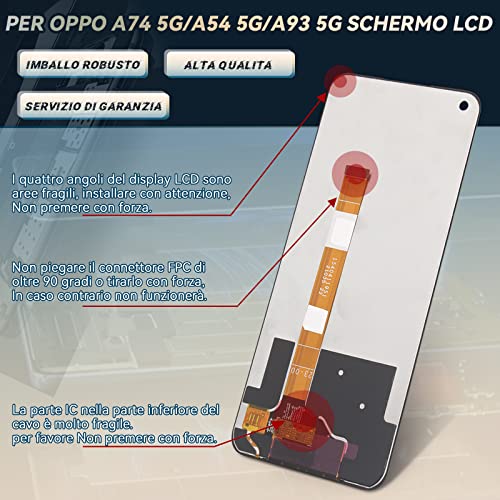 Compatibilità - Display LCD per Oppo A74 5G / A54 5G / A93 5G CPH2197 CPH2263(Non per Versione 4G). Assicurati che il modello del tuo telefono prima dell'acquisto.
