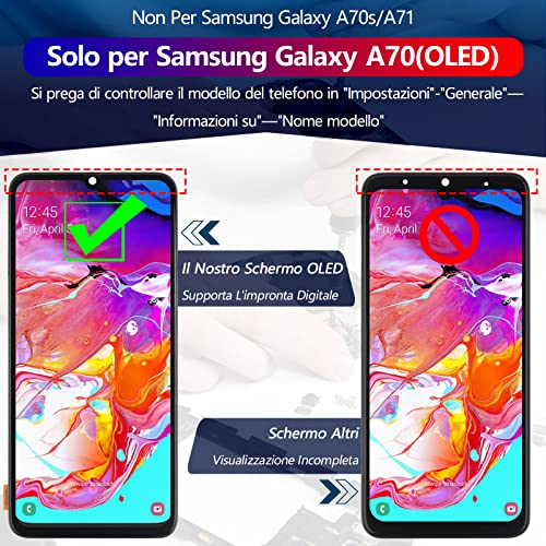 Compatibilità - Display LCD per Samsung Galaxy A70 A705 SM-A705F A705FN A705MN/DS. Assicurati che il modello del tuo telefono prima dell'acquisto.