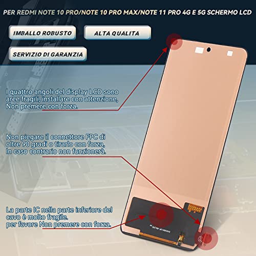 Lo schermo del display è per Xiaomi Redmi Note 10 Pro/Note 10 Pro Max/Note 11 Pro 4G e 5G M2101K6G M2101K6R(Incell,Non per Mi Note 10 Pro/Redmi Note 10) il display LCD. Assicurarsi che il modello del telefono prima dell'acquisto.