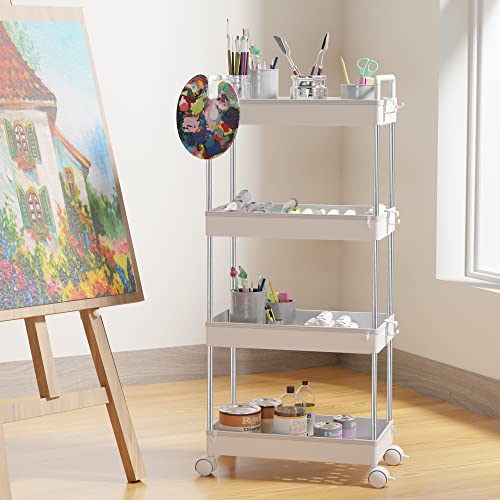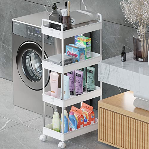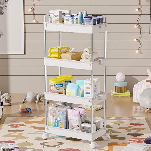 Ronlap Carrello portavivande Carrello da Cucina Carrello da Bagno Carrello 4 Livelli Multiuso ripiano Cucina con Gancio Maniglia, ripiano per Cucina, Bagno, Bianco
