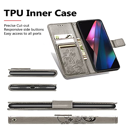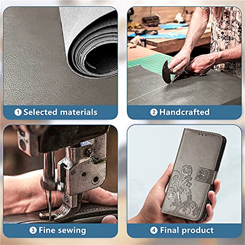 RonRun per Cover alcatel 1S 2021/3L 2021 Flip Caso in PU Pelle Portafoglio Custodia Portafoglio Magnetica Stampa quadrifoglio Cover per alcatel 1S 2021/3L 2021 Grigio