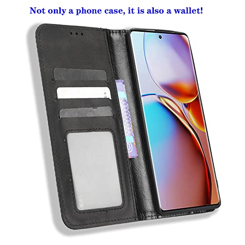 RonRun Cover Motorola Edge 40 Pro, Custodia a Libro con Supporto Stand e Slot Porta Carte Case a Portafoglio Magnetica in Pelle PU Adatto per Motorola Edge 40 Pro, nero