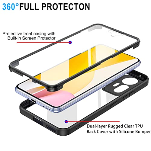 RonRun Cover per Oppo Find X5 Lite, 360 Gradi Antiurto Custodia con Protezione Schermo Integrata Trasparente Rugged TPU Bumper Doppia Protettiva Cover per Oppo Find X5 Lite - Nero
