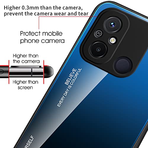 RonRun Cover per Xiaomi Poco C55/Xiaomi Redmi 12C, Custodia per Telefono in Vetro Temperato, Bordo in Silicone Morbido TPU Protettiva Case - Blu