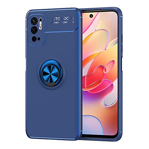 RonRun Cover per Xiaomi Poco M3 PRO 5G, Custodia Antiurto Morbida paraurti iTPU in Silicone Copertura con 360° Metallo Staffa Dell'anello, Compatibile per Xiaomi Poco M3 PRO 5G Blu+Blu