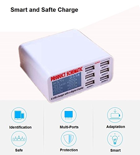 Ronsen W899 Caricabatterie USB - 6 Porta 5V/8A Universale Compatibile Multiplo Hub USB Caricatore Portatile Rapido per Apple iPhone iPad Samsung Galaxy Android Smartphone Tablets Telecamere Macchina Fotografica