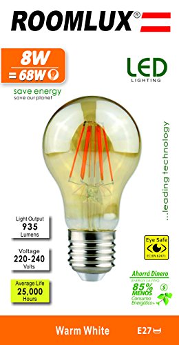 5 X Room Lux E27 a60 8 W Golden LED filamento lampadine, 935 Lumen 2700 K Bianco caldo 360 ° 230 V AC, non dimmerabile,