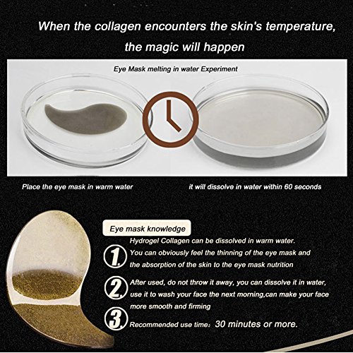 ROPALIA 60 Pezzi/Set Lusso Cristallo Polvere di Perla Nera Gel Oro Maschera Occhi Collagene,Rimuova Cerchi Scuri & Occhiaie,Anti Rughe,Anti Eta,Idratante,Rassodante,Maschera di Sonno,Makeup Trucco Gifts