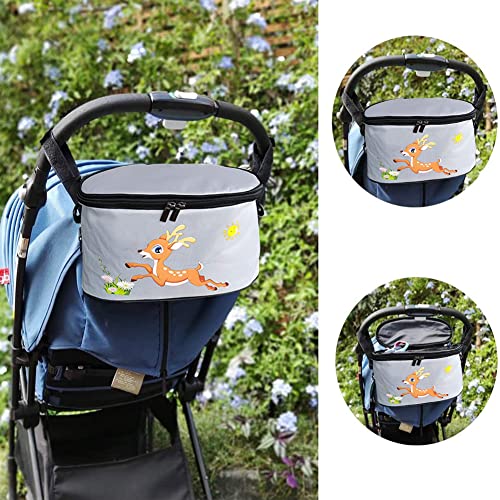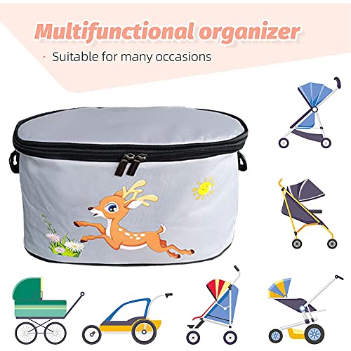 Ropniik Borsa per Passeggino Universale,Borsa Portaoggetti Passeggino Cartoni Animati Organizzatore Passeggino Impermeabile Doppia Cerniera per Passeggini, Bicicletta,Moto(Cervi con Copertura)