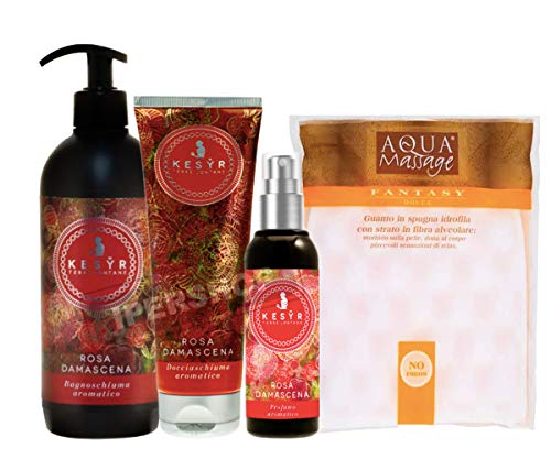 Ke syr set rosa damascena: profumo 100 ml + bagnoschiuma 500ml + docciaschiuma 250 ml + guanto spugna idrofila