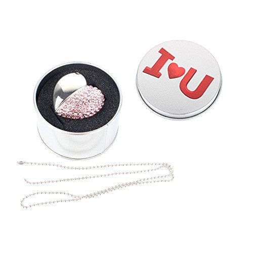 Rosa a forma di cuore USB Flash Drive memory stick USB, Kenor Diamond Crystal Jewerly ciondolo 8 g/32 G/GB/32 GB rosa I LOVE YOU 16G