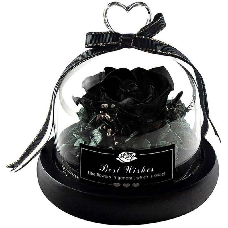 Mostra il tuo amore con questa bellissima rosa dell'eternità nera. Questa rosa giace all'interno di una bella campana a campana con un cuore di vetro in cima e una base nera. C'è anche una fascia nera con un bordo dorato legato attorno al cuore. Lungo il bordo interno della campana è presente un anello luminoso a LED. Sarà facile creare un'atmosfera accogliente accendendo il passante con il pulsante situato nella parte inferiore. Le rose eterne sono un regalo eccellente per San Valentino, la festa della mamma, il matrimonio o il fidanzamento. - Bella rosa nera in una campana - Anello luminoso a LED alimentato a batteria lungo l'interno dell'alloggiamento in vetro - Ottimo regalo per San Valentino, la festa della mamma o il matrimonio Specifiche: Colore: nero Materiale: vetro, plastica Dimensioni, confezione: ca. 15 x 15 x 15 cm Batteria: 3x 1,5 V AAA (non incluse) La confezione contiene: 1 rosa dell'infinito