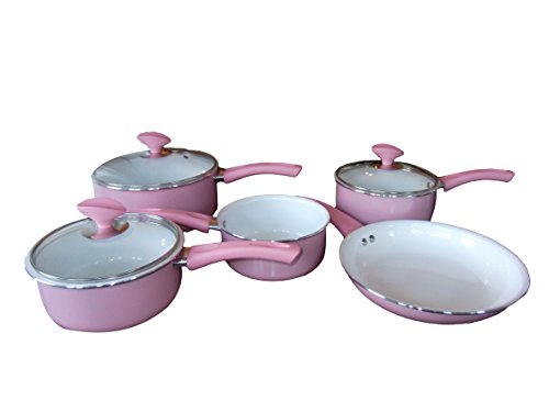 Rosa 5 pezzi Pan Set, Antiaderente in ceramica interni (Set Non include coperchi)