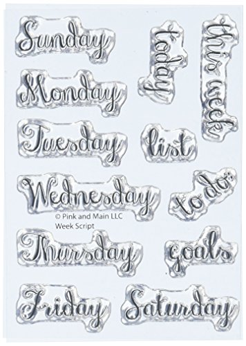 Rosa & Principale Settimana Script timbri Trasparenti, in Acrilico, Multicolore, 3 x 4, 2 Pezzi