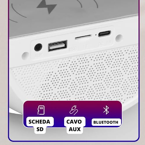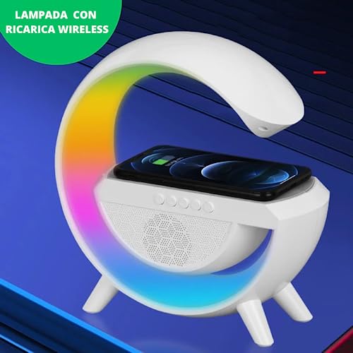 DE ROSA SHOP Lampada Led Senza Fili Intelligente, Lampada Da Comodino Con Bluetooth E Luci, Lampada Da Tavolo Con Ricarica Wireless Dimmerabile Con Porta USB Rgb