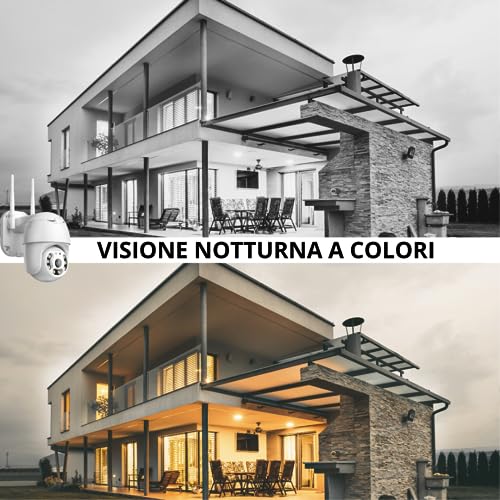 DE ROSA SHOP Telecamera Wi-Fi Esterna, Videocamera Di Sorveglianza 1080IP Ptz 360°, Visione Notturna A Colori, Rilevamento Automatico Del Movimento, Audio Bidirezionale, Protezione Ip66