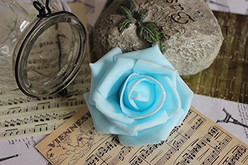 50x Rosa Teste di Fiore Artificiale Schiuma Sposa Bouquet Decorazione Matrimonio Partito Casa - Blu chiaro