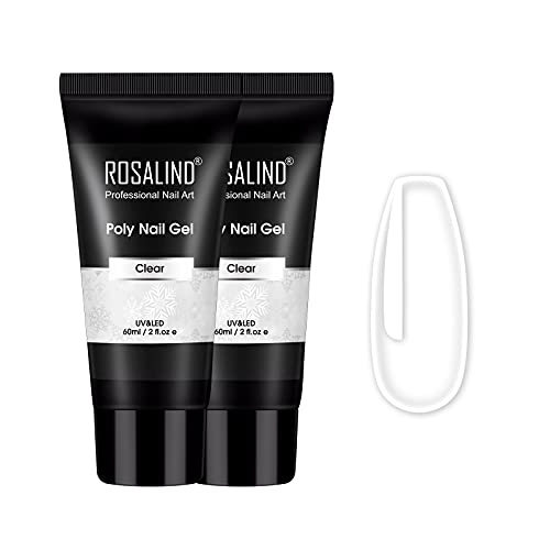 ROSALIND Ricostruzione Unghie Gel 2 * 60ml, Trasparente Acrigel per Unghie Poly Nail Gel Acrilico per Unghie Ispessente, Gel Extension per Unghie per Principianti e Professionisti Manicure da Salone