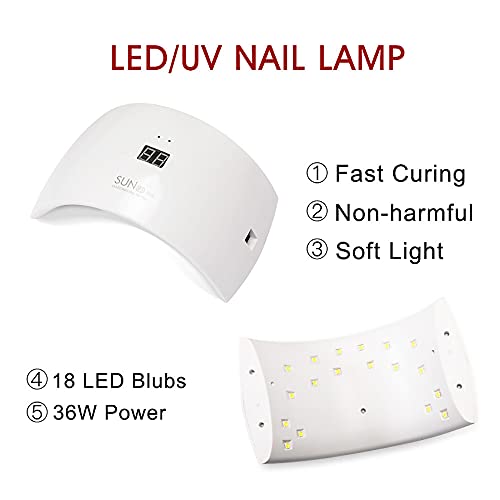 GODITI IL FAI DA TE: con il set di smalti per unghie professionale in gel ALL-IN-ONE, puoi goderti la nail art fai-da-te a casa e risparmiare tempo e denaro perché il kit ha una luce UV da 36 W, 12 colori alla moda di smalto gel, primer, top coat opaco, lucido top coat e 12 tipi di strumenti per manicure.