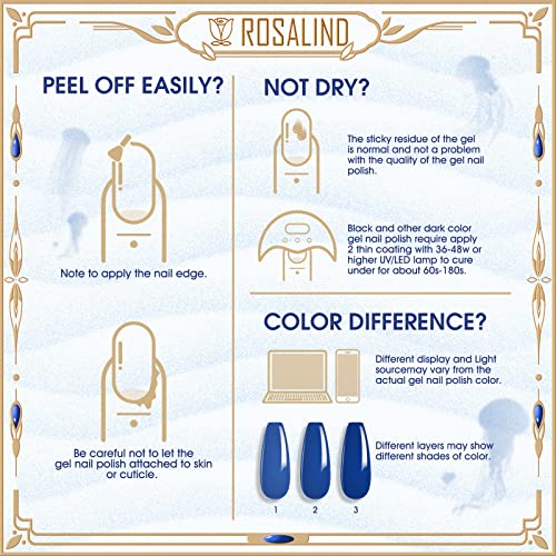 ROSALIND Smalto Semipermanente per Unghie Blu Colori, 15ml UV LED Soak Off Smalti Semipermanenti per Unghie Gel Polish Manicure Nail Art