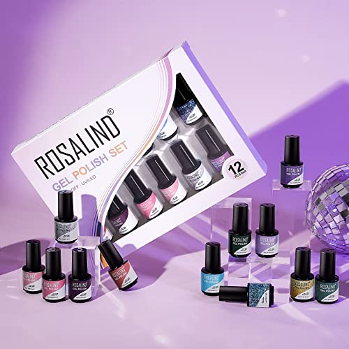 ROSALIND Smalto Semipermanente per Unghie,12 Rosa Glitter Colori Gel Uv Led Smalto Semipermanente Shellac UV Kit