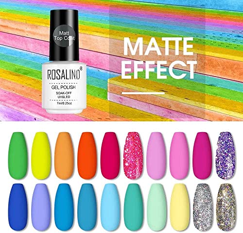 ROSALIND Smalto Unghie in Gel 24 pezzi, 20 Colori Pastello Smalto Semipermente per Unghie Rainbow Estate Brillante Collezione con Base e Top Coat Matt Coat Manicure Nail Art Salon