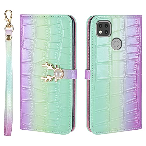 Rosbtib Custodia per Xiaomi Redmi 9C/ Poco C31, Premium Pelle PU Portafoglio con Magnetica Supporto Flip Cover a Libro Case Redmi 9C/ Poco C31 - Gradiente Viola Verde