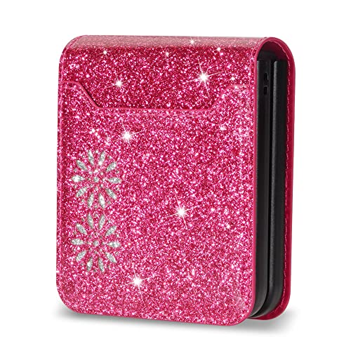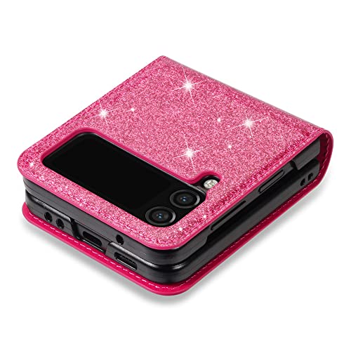 JZ Rose - Luxury Glitter magnetica custodia in pelle portafoglio Caso per Samsung Galaxy Z Flip 3 5G ,Shiny Design Slim Bling Shell del telefono cellulare Cover Con slot per carte