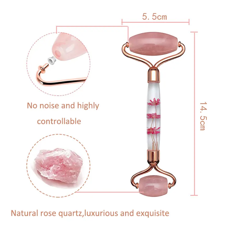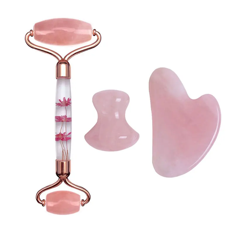 New Rose Quartz Gouache Scraper Face Massage Jade Roller Set Natural Gouache Stone Facial Roller Jade Massager Gua sha Scraper