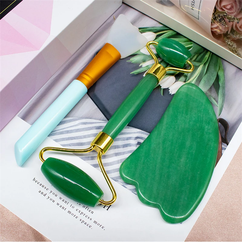 Rose Quartz Jade Roller Massage Spa Natural Pink Handmade Gua Sha Set Stone Facial Beauty Device Jade Stone Face Skin Care Tools