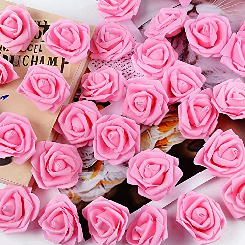 Rose di Schiuma Rose Artificiali Fiori Teste di Rosa Petali di Rosa 50 Pezzi Fiori Finti Rose di Schiuma Bouquet da Sposa Festa Fai da Te Casa Decorazione di Cerimonia Nuziale (50 Pezzi, Rosa scuro)
