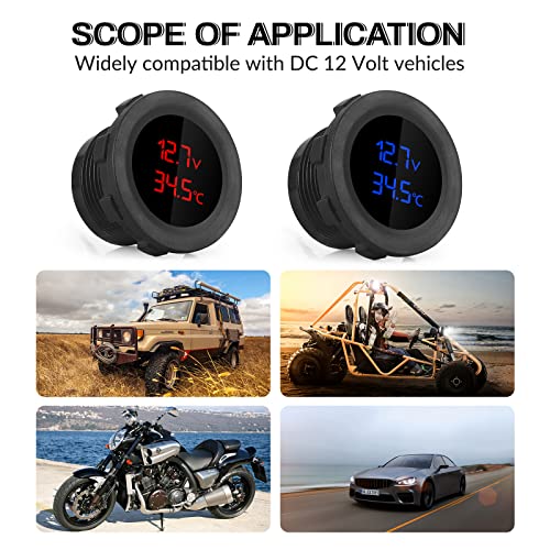 ROSEBEAR Misuratore di Temperatura Voltmetro Batteria Digitale per Auto Moto per Veicoli 12V