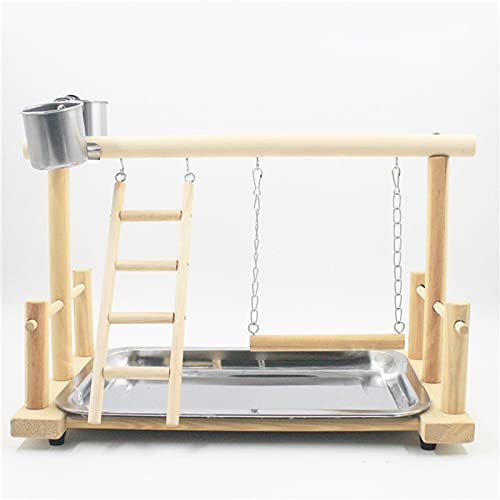 RoseFlower Supporto per Uccelli in Legno, Pappagallo Parco Giochi, Palestra/Set di Giocattoli, Trespolo per Pappagalli, Supporto per Pappagallo Portatile da Tavolo, con Posatoi, Scale, Vassoio