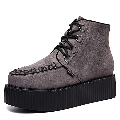 RoseG Scarpe da Donna High Stivali Polacchine Top Creepers Grigio Size35