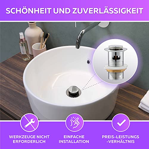 Installazione Semplice e Veloce - Grazie alle guarnizioni di tenuta e alle istruzioni incluse, il tappo scarico del lavandino (G1-1/4 Pollici) può essere installata in pochi passaggi in qualsiasi lavabo standard o piletta bidet senza l'utilizzo di alcun attrezzo.