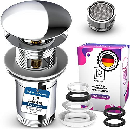 M. ROSENFELD HOME Piletta Click Clack per Lavabo del Bagno con Troppopieno - Incl. Aeratore del Rubinetto - Universale Scarico G1-1/4 Pollici - Tappo Lavandino del Bagno Cromato in Acciaio Inox