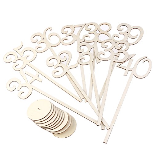 Set di numeri di tavolo in legno di colore legno 40pcs con supporto Base per decorazione tabella del partito di nozze compleanno.