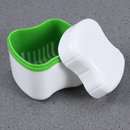 ROSENICE Astuccio contenitore per dentiera con contenitore per risciacquo (verde)